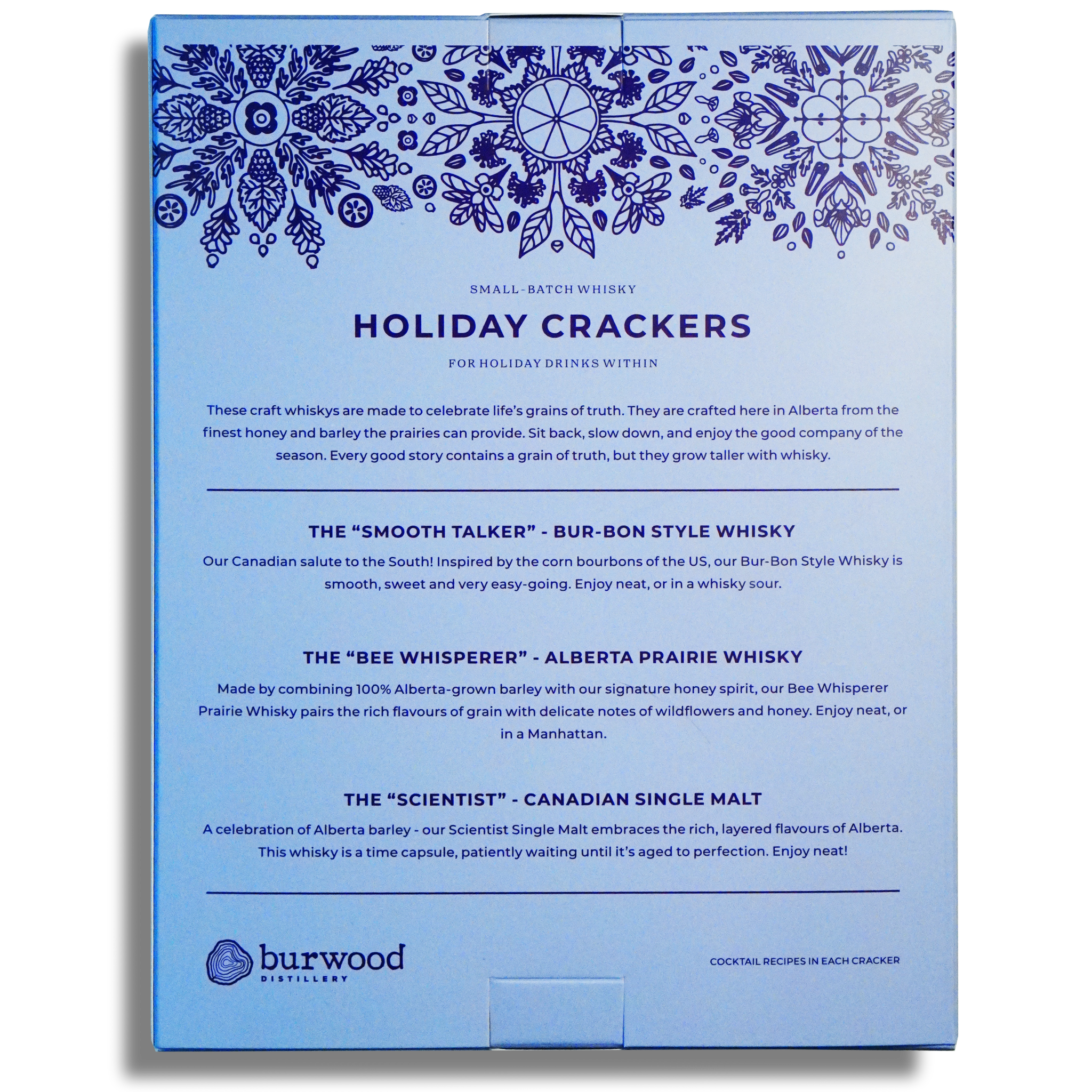 Our Burwood Christmas Crackers return for another year, this time with Whisky! Share the 3 whiskys from our Grains of Truth series with your loved ones this festive season! Contains The Smooth Talker, The Bee Whisperer and the Scientist, along with recipes and jokes.